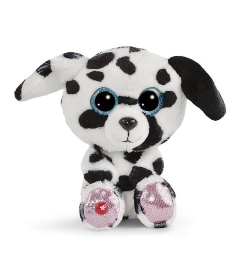 Glubschis Plyšový Dalmatin Dottino 15 cm vás okouzlí svým hebkým kožíškem v bílé barvě s černými puntíky, modrýma třpytivýma očima a lesklými prvky na jeho malých chodidlech. V kolekci GREEN od Nici se téměř výhradně používají plyšové a výplňové materiály vyrobené z recyklovaných materiálů. Výška: 15 cm. Rozměr hračky: 15 x 12 x 9 cm. Rozměr balení: 18 x 16 x 11 cm. Věk 0 +