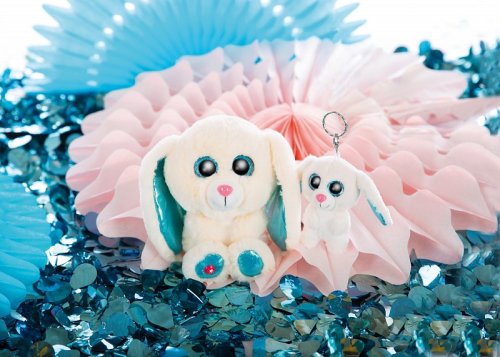 Králíček Wolli-Dot GLUBSCHIS se svou chlupatou srstí je skvělým mazlíčkem. Nadýchané poddajné uši s modrým třpytivým vnitřkem a jasně modré třpytivé oči jsou absolutním vrcholem. Výška: 15cm Věk: 0+