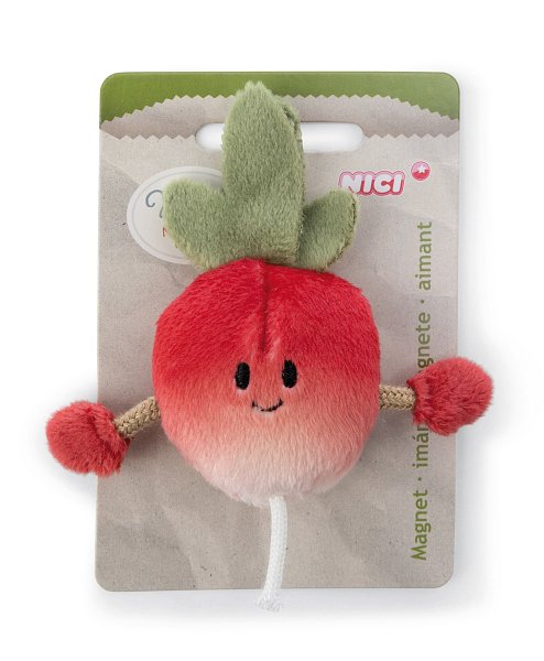 Červená plyšová ředkvička s roztomilými malými ručičkami jako Mini MagNICI je plyšovým magnetem, který je zároveň praktickým i dekorativním doplňkem. Se svým kouzelným výrazem tváře vykouzlí malá ředkvička z nadýchaného plyše úsměv na každé tváři a rychle se stane nepřehlédnutelným doplňkem na lednici nebo magnetické tabuli. Mini MagNICI je součástí světa produktů NICI GREEN. Pro produkty NICI GREEN se používá téměř výhradně plyš a výplňový materiál vyrobený z recyklovaných materiálů. Pro tento účel se na RPET zpracovávají primárně recyklované PET lahve. Rozměry MagNICI: 9 x 7 x 2,5 cm. Rozměry balení: 10 x 7 x 2,5 cm. Věk 3+