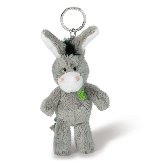 Malý šedý plyšový oslík jako talisman pro štěstí na klíčenku. Přívěsek od Nici má na hrudi vyšitý malý čtyřlístek a doprovází svého majitele jako malý strážce. Výška 10 cm. Věk: 3+