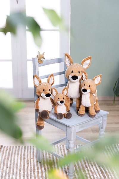 Rozkošný srneček z vysoce kvalitního, hebkého plyše NICI. Díky svému okouzlujícímu vzhledu a hebkému plyšovému kožíšku v hnědo-bílé barvě je perfektním kamarádem na hraní i mazlení. S jemnýma srnčíma očima, roztomilými lesklými parůžky na čele, velkými oušky a detailní výšivkou na noze si tento nadýchaný společník získá srdce každého. Ať už jako věrný každodenní společník, mazlivý kamarád na usínání nebo roztomilá dekorace – srneček René Roebuck z kolekce Forest Friends je dokonalým dárkem pro fanoušky plyšáků všech věkových kategorií. René je součástí světa produktů NICI GREEN. Pro produkty NICI GREEN se používá téměř výhradně plyš a výplňový materiál vyrobený z recyklovaných materiálů. Rozměry hračky: 25 x 9 x 10 cm. Věk 0 m+