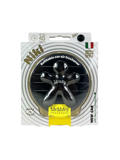 Originální autovůně ve tvaru panáčka s novým 3D vzorem přináší květinovou vůni v elegantním designu "Titanium Chrome". Dvoudílné provedení umožňuje snadnou výměnu náplně a zajišťuje optimální proudění vzduchu ve ventilaci. Vůně kombinuje tóny pomeranče, jablka a šafránu s květinovým srdcem a smyslným dřevitým základem, přičemž vydrží až 45 dní. Vyrobeno z netoxické pryže EVA a ABS plastu, design pochází od L. Trazziho a nese certifikace IFRA a FSC.