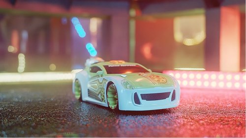 Vysoce kvalitní, dobře postavené auto, velmi realistický design a zvuky jízdy. Tlačítka pro světla, zvuky a skvělou hudbu. Baterie: 3 x AA,LR6 (součástí balení). Rozměry auta: 26 x 11 x 8 cm.