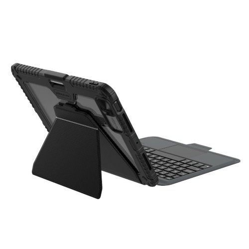 Nillkin Bumper Link Keyboard Case je víceúčelový ochranný kryt tabletu s odnímatelnou podsvícenou klávesnicí, slotem pro Apple Pencil a plynule nastavitelným úhlem tabletu. Chcete svůj tablet využívat jako mobilní kancelář, jako náhradu za těžký notebook, nebo vás prostě jen tablet baví, tak přesně pro vás je zde víceúčelový ochranný kryt Nillkin. Kryt vám nabídne špičkově zpracovanou odnímatelnou bezdrátovou klávesnici s nízkým zdvihem, tichými a odolnými spínači a precizní profilací kláves pro to nejpohodlnější psaní. Součástí odnímatelné klávesnice je také praktická opěrka pro tablet s plynulým nastavením úhlu. Klávesnice je také vybavena podsvícením, u kterého máte možnost si zvolit barvu a úroveň podsvícení. Na výběr je 7 různých barev a 4 úrovně podsvícení. Na kryt se uchytí pomocí magnetu, který je integrovaný na zadní straně krytu. Díky magnetu můžete kryt nastavit jak na šířku, tak na výšku. Kryt má integrovaný slot s nabíjením přímo pro Apple Pencil. Můžete ho tak mít vždy s sebou a co je hlavní, bude vždy plně nabitý. O nabíjení Apple Pencil a napájení bezdrátové klávesnice se stará baterie s kapacitou 500mAh. V nepřetržitém provozu (s vypnutým podsvícením) vám klávesnice vydrží až 100 hodin. Se zapnutým podsvícením vydrží až 14 hodin. Kryt se skládá z TPU + PU materiálu, který chrání váš tablet před poškozením. Navíc je opatřen zesílenými rohy a posuvným krytem fotoaparátu pro ještě větší ochranu.