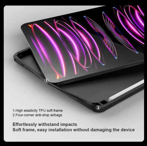 CamShield Pad zadní kryt je multifunkční kryt navržený pro tablety, který spojuje styl, ochranu a praktické funkce do jednoho. Kryt je vyroben z kombinace odolných materiálů TPU a PC, které zajišťují vynikající ochranu proti pádu, poškrábáním, nárazům i ohýbání. Má i posuvný kryt fotoaparátu, který vám ochrání čočky před poškrábáním a nežádoucím prachem. Výklopný stojánek vám umožní pohodlné sledování obrazovky pod různými úhly, což oceníte při práci, zábavě nebo videohovorech. Díky magnetické funkci lze snadno připevnit k dalším magnetickým povrchům nebo příslušenství, což přináší maximální flexibilitu při používání. Kryt má také vyhrazený slot na stylus, který vám zajistí, že ho budete mít vždy po ruce a můžete okamžitě zaznamenat každý moment inspirace. Detaily jako mírně zvýšené okraje proti poškrábání displeje, postranní protiskluzové pruhy pro lepší úchop a citlivá, přesná tlačítka dělají z tohoto krytu ideální ochranu pro váš tablet, připravenou zvládnout každou situaci.