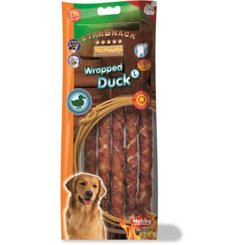 Tento pamlsek je vyroben z kvalitních přísad, bez umělých barviv nebo dochucovadel a obsahuje 2 % tuku. Váš pes touto formou hry uspokojí své kousací vášně a zároveň posiluje čelistní svalstvo. Pamlsky pomáhají pečovat o zuby psům tím, že dochází drhnutí povrchu zubů. Intenzivní kousání a žvýkání také uspokojuje přirozenou potřebu psů něco kousat a pomáhá udržovat svěží dech. Složení: 34,8 % hovězí kůže, 59,5 % kachní maso. Analytické složky: protein 88 %, obsah tuku 2 %, vláknina 1 %, popel 2,5 %, vlhkost 18 %. Krmivo podávejte jako odměnu nebo kdykoliv jako součást vyvážené stravy. Uchovávejte v suchu a chladu. Vždy zajistěte dostatek čerstvé vody. Není určeno pro lidskou spotřebu.
