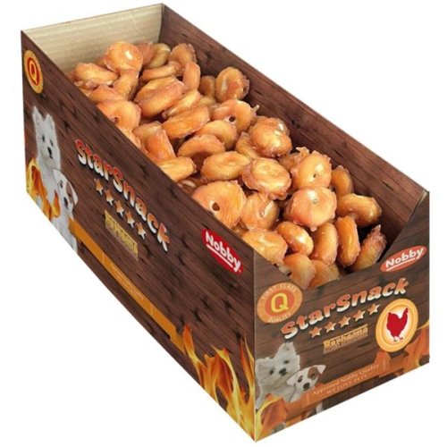 StarSnack BBQ Biscuit Donut Chicken Mini jsou chutné pamlsky pro psy, vyrobené z libového masa a speciálních ingrediencí. Pamlsek v mini provedení spojuje tvar donutu s oblíbenou chutí a nabízí zdravou a chutnou odměnu psům všech plemen a velikostí. Průměr (cca): 3,5 cm Složení: maso a vedlejší produkty živočišného původu (58,8 % kuřecího masa), vedlejší produkty rostlinného původu, rostlinné proteinové extrakty (3,1 % hrachového proteinu), oleje a tuky, minerální látky. Analytické složky: hrubý protein 25 %, hrubý tuk 3 %, hrubý popel 3 %, hrubá vláknina 1 %, vlhkost 23 %. Krmný návod: Podávejte jako odměnu nebo kdykoli jako součást vyvážené stravy. Psovi zajistěte stálý přístup k čerstvé pitné vodě. Není vhodné pro štěňata mladší 4 měsíců. Upozornění: Není určeno pro lidskou spotřebu. Skladujte v suchu a chladu.