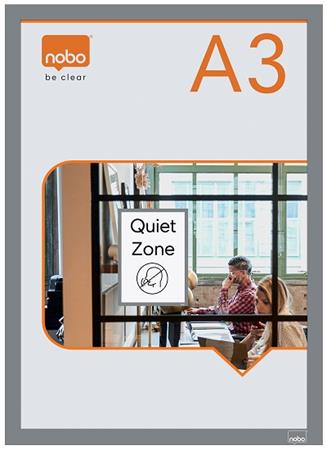 "Samolepicí magnetický plakátový rám pro bezpečné vystavení plakátů, nápisů a informací. Držák plákátů má magnetický proužek ve spodní části rámu, který umožňuje rychlou a snadnou výměnu obsahu a udržuje vložená oznámení bezpečně na místě. Tento magnetický plakátový rám můžete díky přilnavé vrstvě pevně připevnit na rovný povrch buď na výšku, nebo na šířku, průhledná matná vrchní deska pomáhá chránit zobrazený obsah, lze ji otírat. Zobrazovací plocha formátu A3. Balení 2 stříbrných rámů na plakáty.