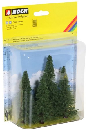 Sada obsahuje čtyři ručně zpracované jedle vysoké 8 až 12 cm, vhodné pro měřítka H0 a TT. Stromy jsou pokryté kvalitním materiálem, který vytváří husté a věrohodné jehličí. Jemná struktura posypu dodává jedlím realistický vzhled a přispívá k celkovému oživení modelové krajiny. Jedle lze umístit samostatně i ve skupinách, ať už do hustého lesa, na jeho okraj nebo do parku. Díky přirozenému vzhledu se snadno začleňují do různých typů scenérií a vytvářejí autentickou přírodní atmosféru. Stabilní podstavce umožňují snadné upevnění na povrch modelu. Pro trvalé přilepení je ideální použít tavné lepidlo nebo speciální lepidlo na modelové stromy. Ručně zpracované jedle přinášejí do miniaturního světa krásu a rozmanitost jehličnatých lesů a jsou skvělou volbou pro všechny modeláře, kteří dbají na kvalitu a věrohodnost zpracování. Hlavní vlastnosti: jedná se o model, nejedná se o hračkuvhodné od 14 letpro měřítka H0, TTsada 4 ks