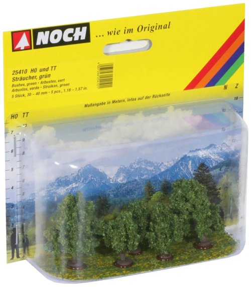 Sada obsahuje pět detailně zpracovaných keřů o výšce 3 až 4 cm vhodných pro dotvoření lesních okrajů, parků či zahrad. Realistické ztvárnění listů a přirozené barevné odstíny dodávají krajině živý a věrohodný vzhled. Keře lze využít jako podrost v lesních scenériích nebo jako okrasnou zeleň ve městském prostředí. Díky své univerzálnosti se snadno začleňují do různých typů krajin a obohacují miniaturní svět o přírodní detaily plné atmosféry. Rozmanité možnosti využití umožňují vytvářet ještě realističtější a propracovanější modelové scény. Hlavní vlastnosti: jedná se o model, nejedná se o hračkuvhodné od 14 letpro měřítka H0, TTsada 5 ks