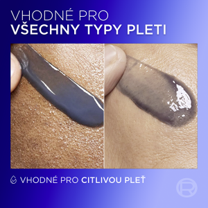 Gel v půlnočně modré barvě nelepí a okamžitě se vstřebává, aniž by zanechával stopy. Intenzivně hydratuje pleť a obnovuje její hydratační bariéru, zlepšuje její tonizaci a redukuje výskyt jemných linek a vrásek.