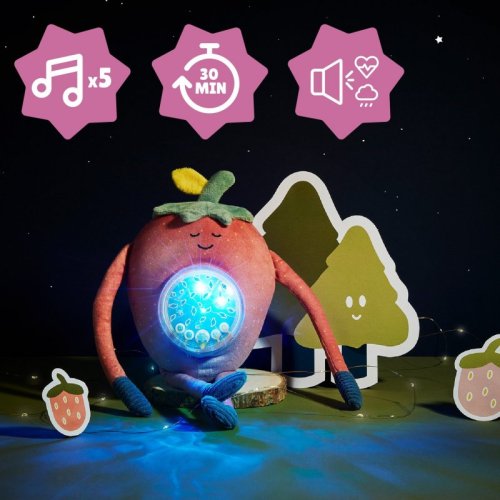 Seznamte se s Barnabéem: nočním projektorem ve tvaru jahůdky, který se stane novým nejlepším přítelem děťátka před spaním nebo zdřímnutím.