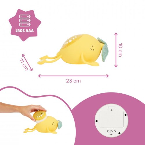 Seznamte se s Basileem: nočním projektorem ve tvaru citrónku, který se stane novým nejlepším přítelem děťátka před spaním nebo zdřímnutím.