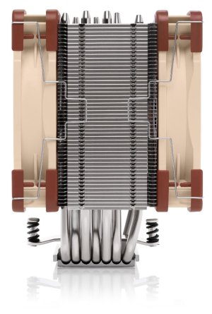 Kombinací dvou předních větráků NF-A12x25 PWM a kompletně předělaného heatsinku s rozšířeným pokrytím větráků dosahuje nadprůměrných výsledků.