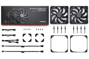 | Obsah balení | 2× ventilátor (PPA, PPB), 2× L.N.A., PWM splitter, 2× prodlužovací kabel, 8× antivibrační úchyty, 2× těsnění pro radiátory, šrouby |