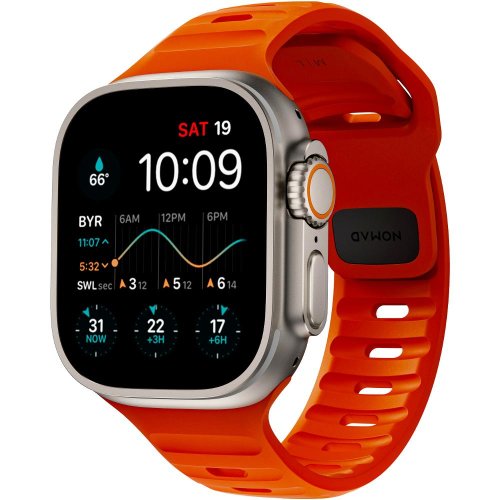Řemínek - pro Apple Watch 42mm, Watch 44mm, Watch 45mm a Watch Ultra 49mm, materiál silikon, k zapojení slouží 24mm Apple kolejnice , pro obvod zápěstí od 15 do 20 cm, oranžová barva