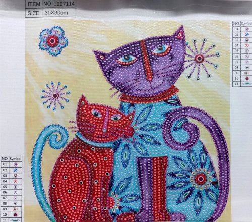 Balení obsahuje: plátno s předtištěným obrázkem, pero na aplikaci kamínků, misku na vysypání kamínků, vosk na nalepení, sadu barevných kamínků Diamantové malování - postup: Horní strana plátna je potažena lepidlem a překrytá průhlednou folií. Folii sundávejte postupně po částech tak, jak budete aplikovat kamínky. Při sejmutí celé folie najednou se může lepicí vrstva znečistit a kamínky by nemusely tak dobře držet. Plátno obsahuje znaky, které jsou uvedeny v přiložené legendě a odkazují na příslušný sáček s kamínky označený číslem. Kamínky z daného sáčku vysypejte do misky. Do hrotu pera naberte vosk, díky kterému se kamínky snadno přichytí na pero. Kamínky perem nanášejte na obrázek. Po nalepení dané barvy kamínky nasypejte zpět do sáčku a pokračujte s další barvou.
