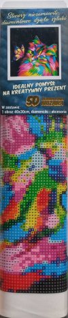 Balení obsahuje: plátno s předtištěným obrázkem, pero na aplikaci kamínků, misku na vysypání kamínků, vosk na nalepení, sadu barevných kamínků Diamantové malování - postup: Horní strana plátna je potažena lepidlem a překrytá průhlednou folií. Folii sundávejte postupně po částech tak, jak budete aplikovat kamínky. Při sejmutí celé folie najednou se může lepicí vrstva znečistit a kamínky by nemusely tak dobře držet. Plátno obsahuje znaky, které jsou uvedeny v přiložené legendě a odkazují na příslušný sáček s kamínky označený číslem. Kamínky z daného sáčku vysypejte do misky. Do hrotu pera naberte vosk, díky kterému se kamínky snadno přichytí na pero. Kamínky perem nanášejte na obrázek. Po nalepení dané barvy kamínky nasypejte zpět do sáčku a pokračujte s další barvou.
