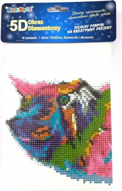 Balení obsahuje: obrázek, pero na aplikaci kamínků, misku na vysypání kamínků, vosk na nalepení, sadu barevných kamínků, stojánek Diamantové malování - postup: Horní strana plátna je potažena lepidlem a překrytá průhlednou folií. Folii sundávejte postupně po částech tak, jak budete aplikovat kamínky. Při sejmutí celé folie najednou se může lepicí vrstva znečistit a kamínky by nemusely tak dobře držet. Plátno obsahuje znaky, které jsou uvedeny v přiložené legendě a odkazují na příslušný sáček s kamínky označený číslem. Kamínky z daného sáčku vysypejte do misky. Do hrotu pera naberte vosk, díky kterému se kamínky snadno přichytí na pero. Kamínky perem nanášejte na obrázek. Po nalepení dané barvy kamínky nasypejte zpět do sáčku a pokračujte s další barvou.