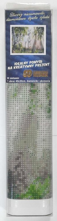 Balení obsahuje: plátno s předtištěným obrázkem, pero na aplikaci kamínků, misku na vysypání kamínků, vosk na nalepení, sadu barevných kamínků Diamantové malování - postup: Horní strana plátna je potažena lepidlem a překrytá průhlednou folií. Folii sundávejte postupně po částech tak, jak budete aplikovat kamínky. Při sejmutí celé folie najednou se může lepicí vrstva znečistit a kamínky by nemusely tak dobře držet. Plátno obsahuje znaky, které jsou uvedeny v přiložené legendě a odkazují na příslušný sáček s kamínky označený číslem. Kamínky z daného sáčku vysypejte do misky. Do hrotu pera naberte vosk, díky kterému se kamínky snadno přichytí na pero. Kamínky perem nanášejte na obrázek. Po nalepení dané barvy kamínky nasypejte zpět do sáčku a pokračujte s další barvou.