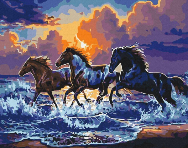 NORIMPEX Diamantové malování Divocí koně na pláži 30x40cm