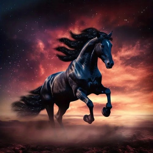 NORIMPEX Diamantové malování Divoký černý hřebec 30x40cm