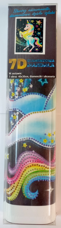 Balení obsahuje: plátno s předtištěným obrázkem, pero na aplikaci kamínků, misku na vysypání kamínků, vosk na nalepení, sadu barevných kamínků Diamantové malování - postup: Horní strana plátna je potažena lepidlem a překrytá průhlednou folií. Folii sundávejte postupně po částech tak, jak budete aplikovat kamínky. Při sejmutí celé folie najednou se může lepicí vrstva znečistit a kamínky by nemusely tak dobře držet. Plátno obsahuje znaky, které jsou uvedeny v přiložené legendě a odkazují na příslušný sáček s kamínky označený číslem. Kamínky z daného sáčku vysypejte do misky. Do hrotu pera naberte vosk, díky kterému se kamínky snadno přichytí na pero. Kamínky perem nanášejte na obrázek. Po nalepení dané barvy kamínky nasypejte zpět do sáčku a pokračujte s další barvou.