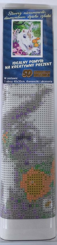 Balení obsahuje: plátno s předtištěným obrázkem, pero na aplikaci kamínků, misku na vysypání kamínků, vosk na nalepení, sadu barevných kamínků Diamantové malování - postup: Horní strana plátna je potažena lepidlem a překrytá průhlednou folií. Folii sundávejte postupně po částech tak, jak budete aplikovat kamínky. Při sejmutí celé folie najednou se může lepicí vrstva znečistit a kamínky by nemusely tak dobře držet. Plátno obsahuje znaky, které jsou uvedeny v přiložené legendě a odkazují na příslušný sáček s kamínky označený číslem. Kamínky z daného sáčku vysypejte do misky. Do hrotu pera naberte vosk, díky kterému se kamínky snadno přichytí na pero. Kamínky perem nanášejte na obrázek. Po nalepení dané barvy kamínky nasypejte zpět do sáčku a pokračujte s další barvou.