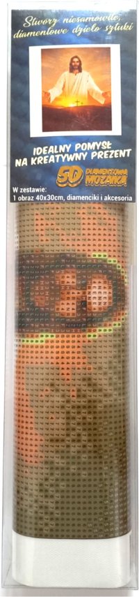 Balení obsahuje: plátno s předtištěným obrázkem, pero na aplikaci kamínků, misku na vysypání kamínků, vosk na nalepení, sadu barevných kamínků Diamantové malování - postup: Horní strana plátna je potažena lepidlem a překrytá průhlednou folií. Folii sundávejte postupně po částech tak, jak budete aplikovat kamínky. Při sejmutí celé folie najednou se může lepicí vrstva znečistit a kamínky by nemusely tak dobře držet. Plátno obsahuje znaky, které jsou uvedeny v přiložené legendě a odkazují na příslušný sáček s kamínky označený číslem. Kamínky z daného sáčku vysypejte do misky. Do hrotu pera naberte vosk, díky kterému se kamínky snadno přichytí na pero. Kamínky perem nanášejte na obrázek. Po nalepení dané barvy kamínky nasypejte zpět do sáčku a pokračujte s další barvou.