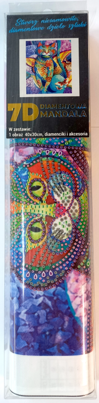 Balení obsahuje: plátno s předtištěným obrázkem, pero na aplikaci kamínků, misku na vysypání kamínků, vosk na nalepení, sadu barevných kamínků Diamantové malování - postup: Horní strana plátna je potažena lepidlem a překrytá průhlednou folií. Folii sundávejte postupně po částech tak, jak budete aplikovat kamínky. Při sejmutí celé folie najednou se může lepicí vrstva znečistit a kamínky by nemusely tak dobře držet. Plátno obsahuje znaky, které jsou uvedeny v přiložené legendě a odkazují na příslušný sáček s kamínky označený číslem. Kamínky z daného sáčku vysypejte do misky. Do hrotu pera naberte vosk, díky kterému se kamínky snadno přichytí na pero. Kamínky perem nanášejte na obrázek. Po nalepení dané barvy kamínky nasypejte zpět do sáčku a pokračujte s další barvou.
