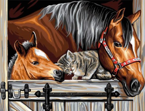 Norimpex Diamantové malování Koně s kočkou 30x40cm