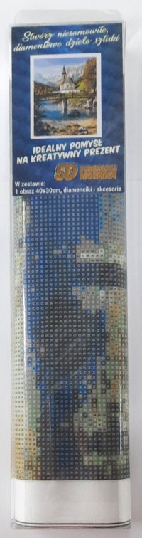 Balení obsahuje: plátno s předtištěným obrázkem, pero na aplikaci kamínků, misku na vysypání kamínků, vosk na nalepení, sadu barevných kamínků Diamantové malování - postup: Horní strana plátna je potažena lepidlem a překrytá průhlednou folií. Folii sundávejte postupně po částech tak, jak budete aplikovat kamínky. Při sejmutí celé folie najednou se může lepicí vrstva znečistit a kamínky by nemusely tak dobře držet. Plátno obsahuje znaky, které jsou uvedeny v přiložené legendě a odkazují na příslušný sáček s kamínky označený číslem. Kamínky z daného sáčku vysypejte do misky. Do hrotu pera naberte vosk, díky kterému se kamínky snadno přichytí na pero. Kamínky perem nanášejte na obrázek. Po nalepení dané barvy kamínky nasypejte zpět do sáčku a pokračujte s další barvou.
