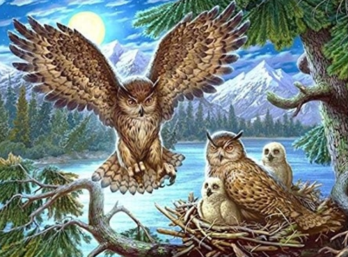 NORIMPEX Diamantové malování Soví hnízdo 30x40cm