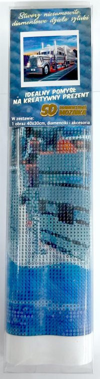 Balení obsahuje: plátno s předtištěným obrázkem, pero na aplikaci kamínků, misku na vysypání kamínků, vosk na nalepení, sadu barevných kamínků Diamantové malování - postup: Horní strana plátna je potažena lepidlem a překrytá průhlednou folií. Folii sundávejte postupně po částech tak, jak budete aplikovat kamínky. Při sejmutí celé folie najednou se může lepicí vrstva znečistit a kamínky by nemusely tak dobře držet. Plátno obsahuje znaky, které jsou uvedeny v přiložené legendě a odkazují na příslušný sáček s kamínky označený číslem. Kamínky z daného sáčku vysypejte do misky. Do hrotu pera naberte vosk, díky kterému se kamínky snadno přichytí na pero. Kamínky perem nanášejte na obrázek. Po nalepení dané barvy kamínky nasypejte zpět do sáčku a pokračujte s další barvou.