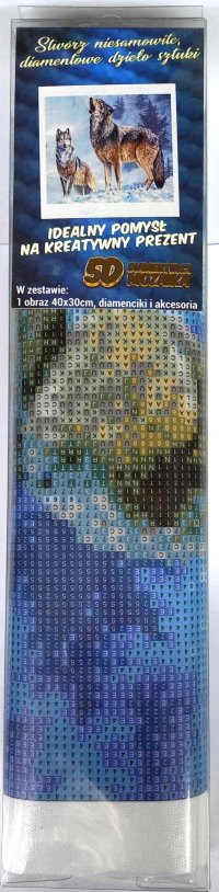 Balení obsahuje: plátno s předtištěným obrázkem, pero na aplikaci kamínků, misku na vysypání kamínků, vosk na nalepení, sadu barevných kamínků Diamantové malování - postup: Horní strana plátna je potažena lepidlem a překrytá průhlednou folií. Folii sundávejte postupně po částech tak, jak budete aplikovat kamínky. Při sejmutí celé folie najednou se může lepicí vrstva znečistit a kamínky by nemusely tak dobře držet. Plátno obsahuje znaky, které jsou uvedeny v přiložené legendě a odkazují na příslušný sáček s kamínky označený číslem. Kamínky z daného sáčku vysypejte do misky. Do hrotu pera naberte vosk, díky kterému se kamínky snadno přichytí na pero. Kamínky perem nanášejte na obrázek. Po nalepení dané barvy kamínky nasypejte zpět do sáčku a pokračujte s další barvou.