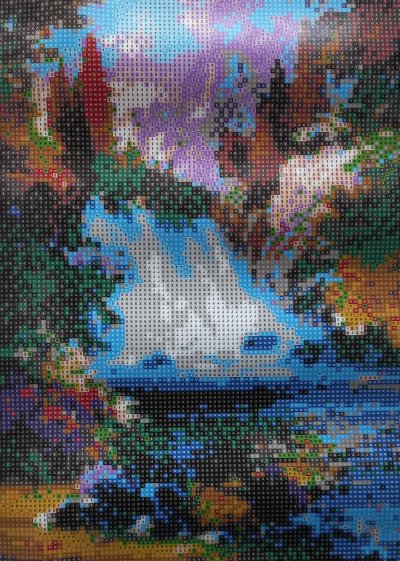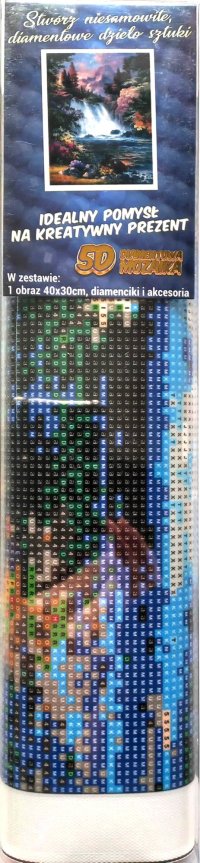 Balení obsahuje: plátno s předtištěným obrázkem, pero na aplikaci kamínků, misku na vysypání kamínků, vosk na nalepení, sadu barevných kamínků Diamantové malování - postup: Horní strana plátna je potažena lepidlem a překrytá průhlednou folií. Folii sundávejte postupně po částech tak, jak budete aplikovat kamínky. Při sejmutí celé folie najednou se může lepicí vrstva znečistit a kamínky by nemusely tak dobře držet. Plátno obsahuje znaky, které jsou uvedeny v přiložené legendě a odkazují na příslušný sáček s kamínky označený číslem. Kamínky z daného sáčku vysypejte do misky. Do hrotu pera naberte vosk, díky kterému se kamínky snadno přichytí na pero. Kamínky perem nanášejte na obrázek. Po nalepení dané barvy kamínky nasypejte zpět do sáčku a pokračujte s další barvou.