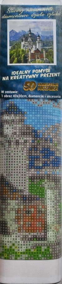 Balení obsahuje: plátno s předtištěným obrázkem, pero na aplikaci kamínků, misku na vysypání kamínků, vosk na nalepení, sadu barevných kamínků Diamantové malování - postup: Horní strana plátna je potažena lepidlem a překrytá průhlednou folií. Folii sundávejte postupně po částech tak, jak budete aplikovat kamínky. Při sejmutí celé folie najednou se může lepicí vrstva znečistit a kamínky by nemusely tak dobře držet. Plátno obsahuje znaky, které jsou uvedeny v přiložené legendě a odkazují na příslušný sáček s kamínky označený číslem. Kamínky z daného sáčku vysypejte do misky. Do hrotu pera naberte vosk, díky kterému se kamínky snadno přichytí na pero. Kamínky perem nanášejte na obrázek. Po nalepení dané barvy kamínky nasypejte zpět do sáčku a pokračujte s další barvou.