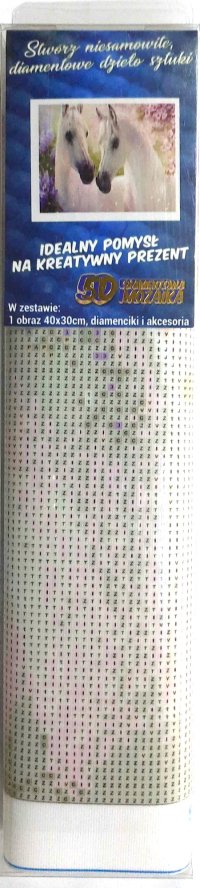 Balení obsahuje: plátno s předtištěným obrázkem, pero na aplikaci kamínků, misku na vysypání kamínků, vosk na nalepení, sadu barevných kamínků Diamantové malování - postup: Horní strana plátna je potažena lepidlem a překrytá průhlednou folií. Folii sundávejte postupně po částech tak, jak budete aplikovat kamínky. Při sejmutí celé folie najednou se může lepicí vrstva znečistit a kamínky by nemusely tak dobře držet. Plátno obsahuje znaky, které jsou uvedeny v přiložené legendě a odkazují na příslušný sáček s kamínky označený číslem. Kamínky z daného sáčku vysypejte do misky. Do hrotu pera naberte vosk, díky kterému se kamínky snadno přichytí na pero. Kamínky perem nanášejte na obrázek. Po nalepení dané barvy kamínky nasypejte zpět do sáčku a pokračujte s další barvou.