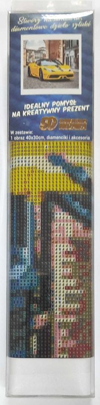 Balení obsahuje: plátno s předtištěným obrázkem, pero na aplikaci kamínků, misku na vysypání kamínků, vosk na nalepení, sadu barevných kamínků Diamantové malování - postup: Horní strana plátna je potažena lepidlem a překrytá průhlednou folií. Folii sundávejte postupně po částech tak, jak budete aplikovat kamínky. Při sejmutí celé folie najednou se může lepicí vrstva znečistit a kamínky by nemusely tak dobře držet. Plátno obsahuje znaky, které jsou uvedeny v přiložené legendě a odkazují na příslušný sáček s kamínky označený číslem. Kamínky z daného sáčku vysypejte do misky. Do hrotu pera naberte vosk, díky kterému se kamínky snadno přichytí na pero. Kamínky perem nanášejte na obrázek. Po nalepení dané barvy kamínky nasypejte zpět do sáčku a pokračujte s další barvou.