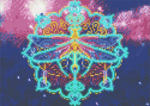 Balení obsahuje: plátno s předtištěným obrázkem, pero na aplikaci kamínků, misku na vysypání kamínků, vosk na nalepení, sadu barevných kamínků Diamantové malování - postup: Horní strana plátna je potažena lepidlem a překrytá průhlednou folií. Folii sundávejte postupně po částech tak, jak budete aplikovat kamínky. Při sejmutí celé folie najednou se může lepicí vrstva znečistit a kamínky by nemusely tak dobře držet. Plátno obsahuje znaky, které jsou uvedeny v přiložené legendě a odkazují na příslušný sáček s kamínky označený číslem. Kamínky z daného sáčku vysypejte do misky. Do hrotu pera naberte vosk, díky kterému se kamínky snadno přichytí na pero. Kamínky perem nanášejte na obrázek. Po nalepení dané barvy kamínky nasypejte zpět do sáčku a pokračujte s další barvou.