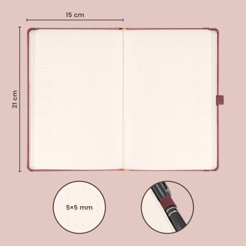 Tečkovaný notes Aprint Neo v růžovém provedení. Klasika i elegance, nejžádanější povrch, na který lze snadno razit firemní loga s jemnou strukturou.