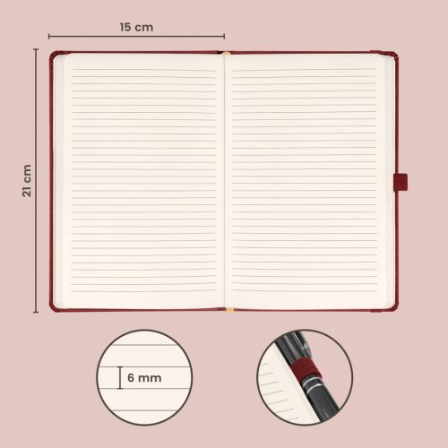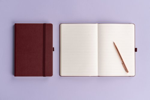 Linkovaný notes Aprint Neo ve vínovém provedení. Klasika i elegance, nejžádanější povrch, na který lze snadno razit firemní loga s jemnou strukturou.