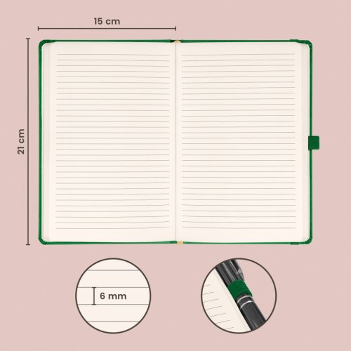 Linkovaný notes Aprint v zeleném provedení. Klasika i elegance, nejžádanější povrch, na který lze snadno razit firemní loga s jemnou strukturou.