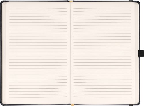 Linkovaný notes Balacron v černém provedení. Povrch diáře si získal oblibu díky kvalitnímu svrchnímu materiálu, který je extrémně odolný vůči vnějšímu poškození.