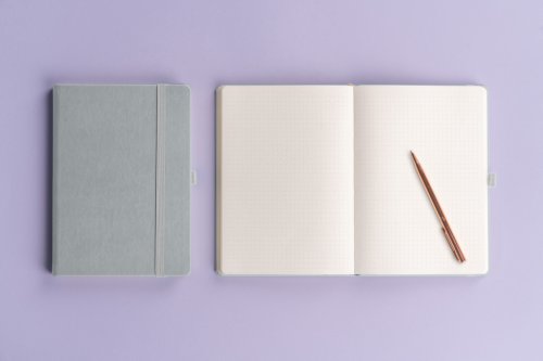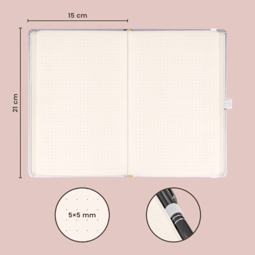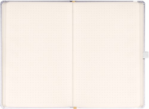 Tečkovaný notes Balacron ve stříbrném provedení. Povrch diáře si získal oblibu díky kvalitnímu svrchnímu materiálu, který je extrémně odolný vůči vnějšímu poškození.