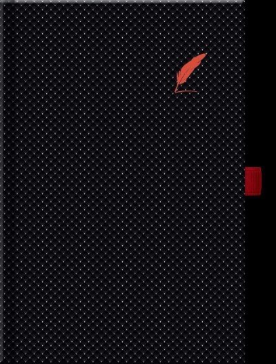 Nedatovaný notes má červenou ražbu, poutko na pero, obsahuje 208 stran, vnitřní listy krémové barvy s řádky. Formát: 205x138x11 mm
