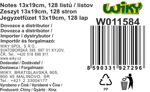 Rozměr: 13x19cm, 128 listů