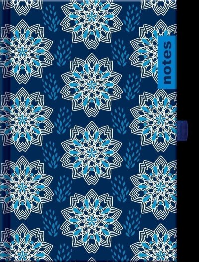 Nedatovaný notes má modrou ražbu, poutko na pero, obsahuje 208 stran, vnitřní listy krémové barvy s řádky. Formát: 205x138x11 mm