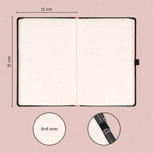 Notes v pevných deskách z kolekce Kateřiny Winterové s motivem růže, s uzavíráním na gumičku, kapsou na drobnosti a poutkem na tužku. Vevnitř najdete 172 tečkovaných stran na žlutém papíře pro zapsání všech vašich nápadů.