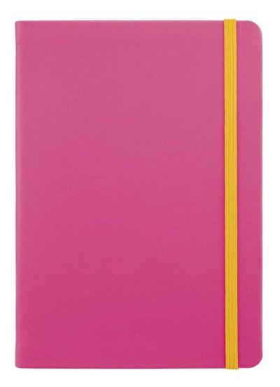 Designový zápisník v růžové barvě doplněný elegantně laděnou žlutou uzavíratelnou gumičkou nesmí chybět tam, kde je potřeba si něco poznamenat nebo nakreslit!